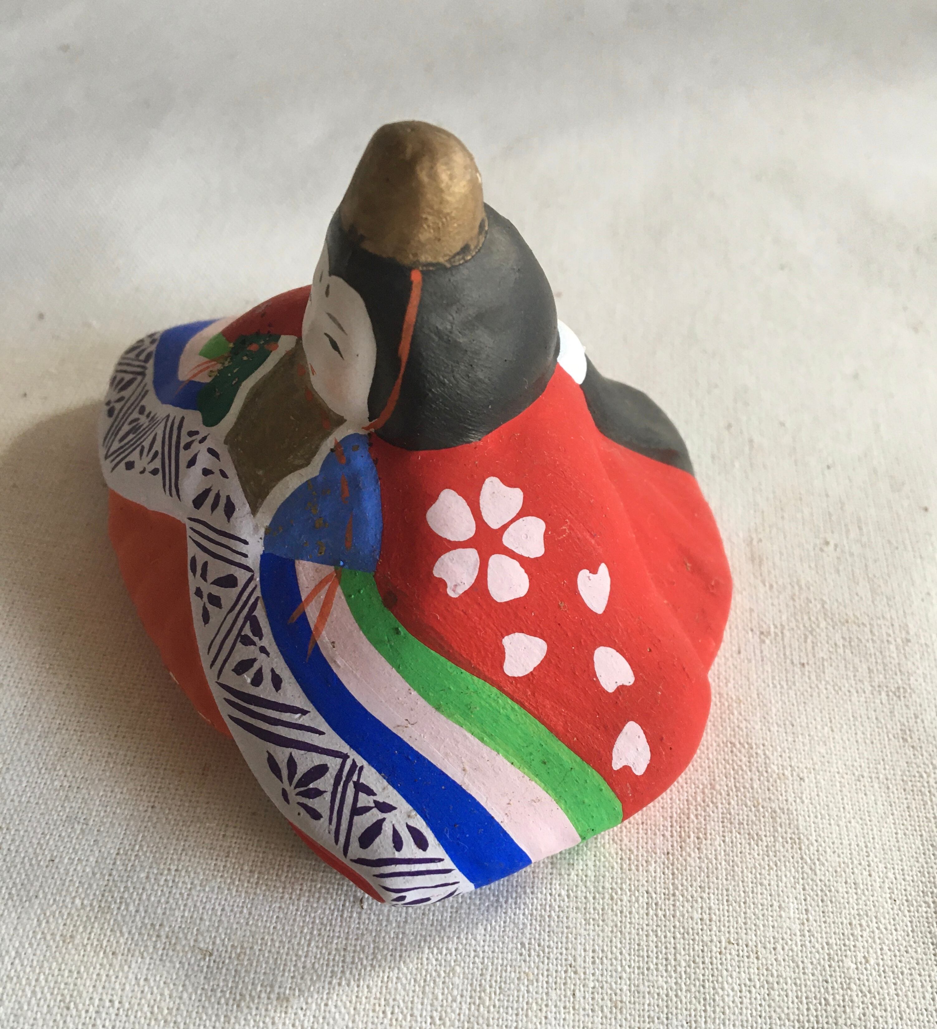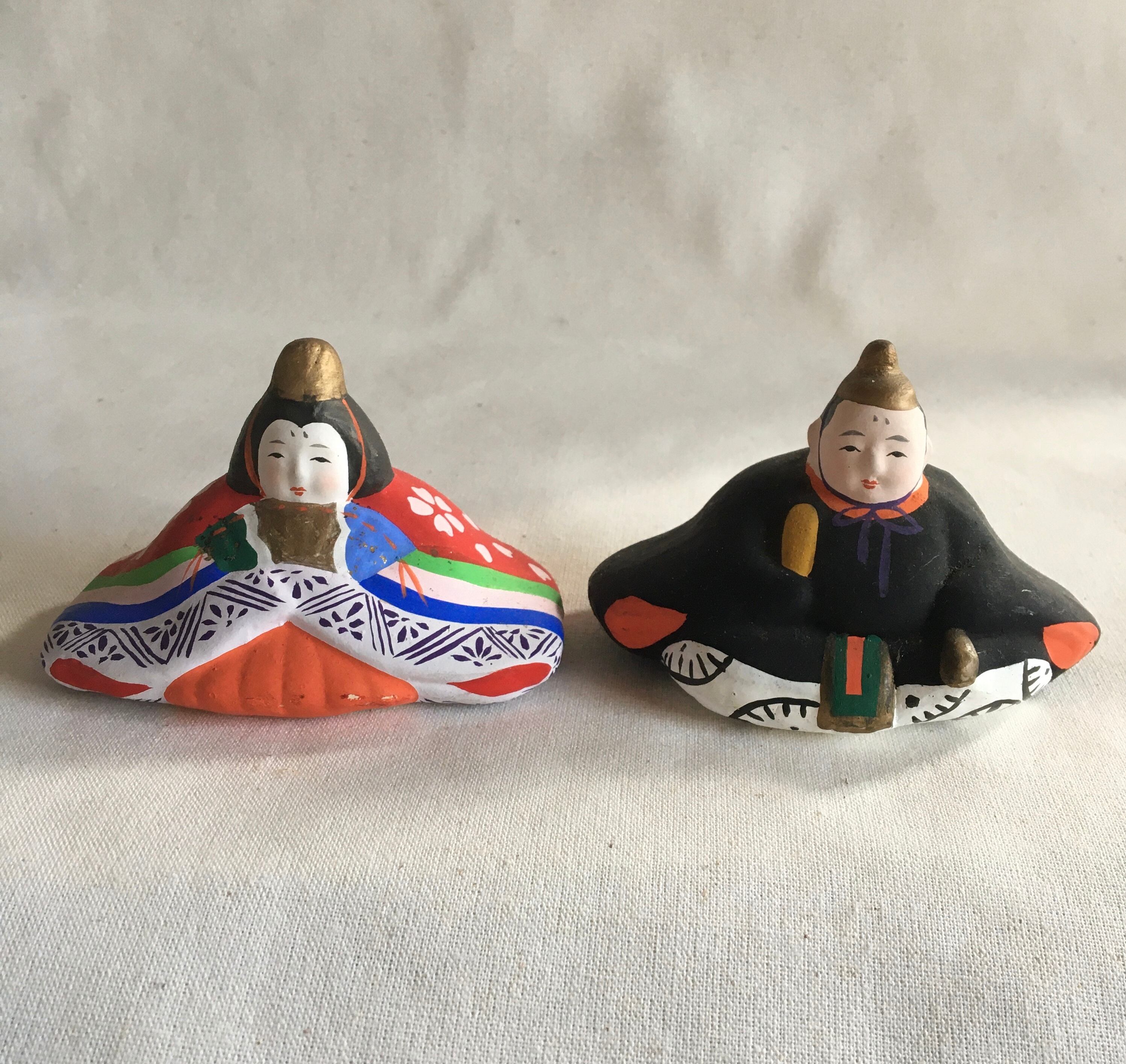 男雛女雛ともに幅9センチ、飾りやすいサイズの土人形のおひなさんです。ぽってりとしたフォルムで、正面だけでなく、真上や横からなどどの角度から見ても可愛らしい雛人形です。